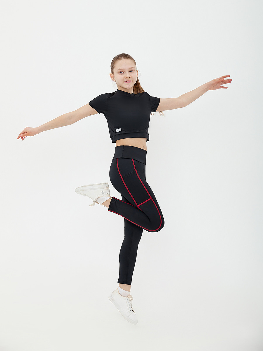 Тайтсы для девочки класического черного цвета с контрасными вставками, изготовлены из спортивной эластичной ткани премиум качества. Эта ткань не вытягивается, не мнется и не теряет яркость цвета после стирок, обладает высокой гигроскопичностью с легкостью отводя влагу при активных занятиях спортом, не теряет форму и не стесняет движений. Высокая посадка, облегающий крой и плоские швы обеспечивают комфорт и удобство благодаря чему легинсы на девочку подходят для любых видов физической активности, а удобный карман позволяет брать с собой на тренировки смартфон, чтобы слушать музыку и всегда быть на связи. Лосины для девочки подойдут для занятий фитнесом, йогой, танцами, гимнастикой, физкультурой для пробежек на свежем воздухе и активных прогулок. Леггинсы для девочки является неотъемлемой частью спортивного гардероба. Лосины на девочку можно сочетать с топами, футболками, боди, худи, толстовкой, костюмом. Так же отлично подойдет для повседневной носки, используйте их как гамаши домашние или лосины под юбку.