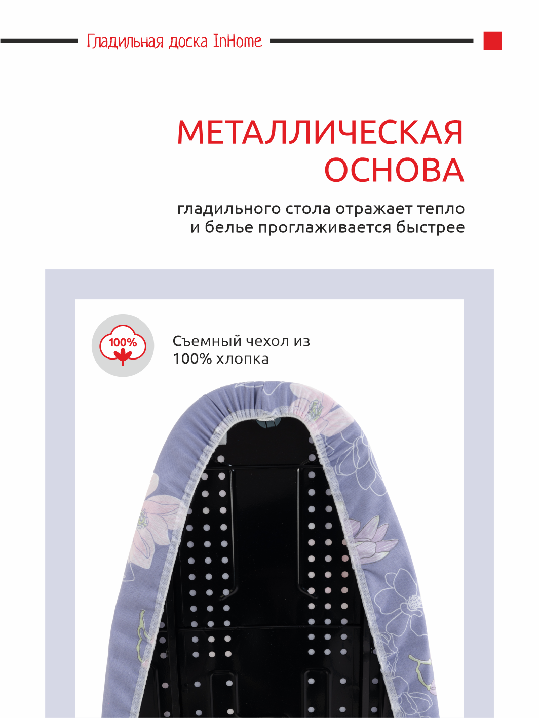 Гладильная доска InHome с розеткой и подставкой для утюга парогенератора