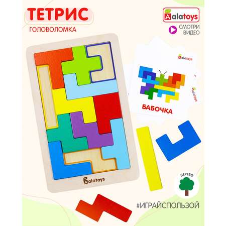 Ребенку быстро становится скучно с примитивными игрушками? Предложите ему Танграм Тетрис деревянный с набором карточек - необычная восточная головоломка для детей, пришедшая из глубокой старины. Специально для малышей - комплект из семи разноцветных геометрических деталей, которые при сложении образуют квадрат. В комплект входят 24 картонных карточки с образцами фигур для сборки, среди которых примеры силуэтов животных. Их необходимо "оживить" при помощи геометрических элементов танграма.