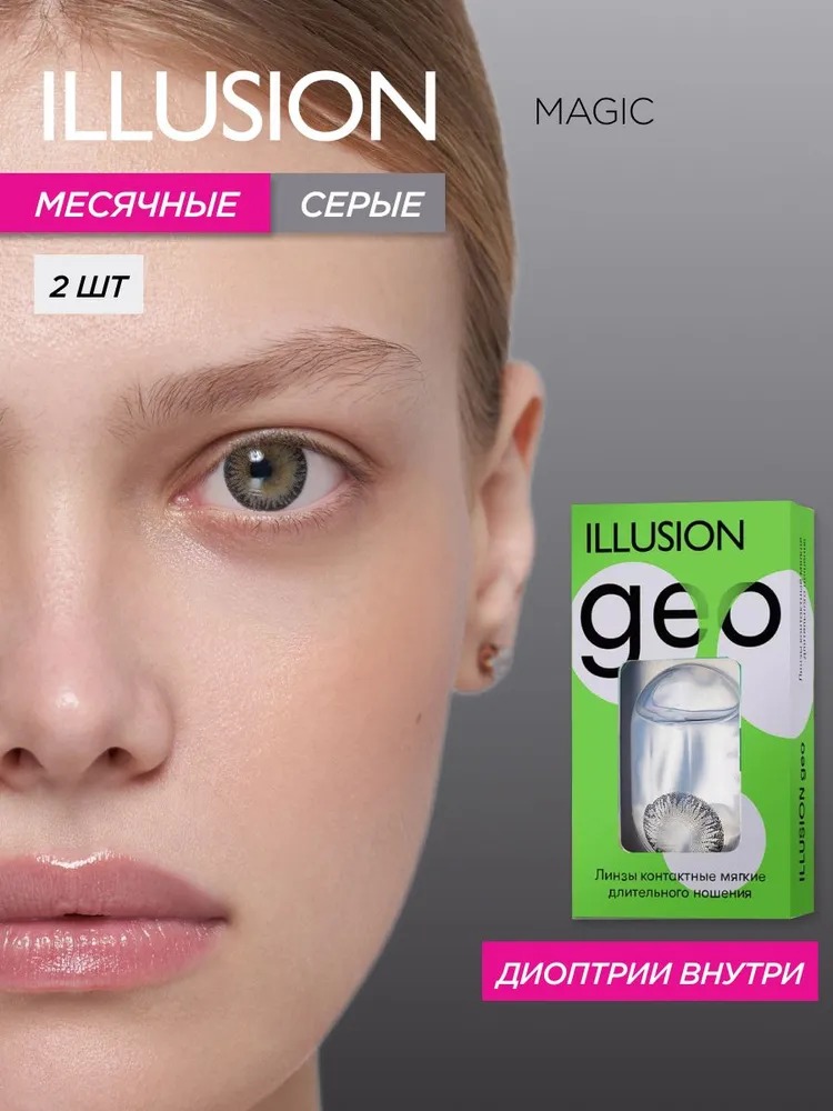 Цена на Контактные линзы ILLUSION geo magic grey на 1 месяц -2.00/14.2/8.6 2 шт. - 981 ₽.