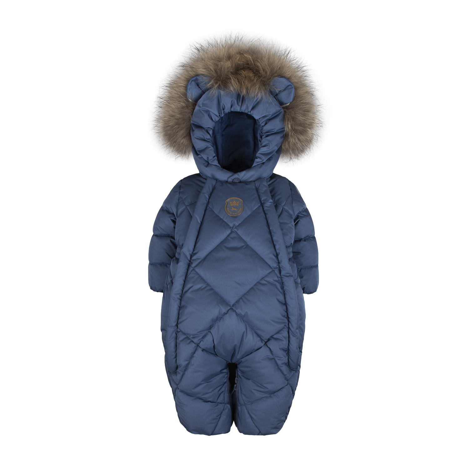 Зимний комбинезон-трансформер пуховый. Утеплен элитным пухом (80% пух, 20% перо), очень легкий и теплый (от -5 до -35 градусов). Комбинезон с натуральной опушкой из меха финского енота. В качестве подкладки использовался комфортный для малышей материал - кулирная гладь (100% хлопок). В зависимости от возраста ребенка, Вы можете выбрать, каким образом использовать модель: как комбинезон или конверт. По низу ножек планка, которая застегивается на пуговицы, для фиксации изделия в виде конверта. По низу ножек и ручек теплые отвороты. По краю капюшона эластичная резинка для плотного прилегания к лицу и защиты от ветра и снега. Декоративные ушки защищают от прикосновений меха опушки к лицу ребенка. В комплекте несъемные резиновые штрипки, которые надеваются поверх обуви и позволяют не задираться штанине. Имеются световозвращающие элементы.