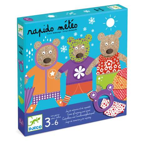 Игра Одень мишку! от французской компании Djeco - это веселая и динамичная игра на развитие памяти. Ведущий вытягивает карту с изображением мишки, подробно описывает погоду и одежду, в которую он одет. Остальные игроки должны как можно быстрее одеть своего мишку, тот кто сделает это раньше всех и правильно, побеждает. А можно усложнить игру и не называть погодные условия, тогда вариантов нарядов становится больше, и игра становится еще интереснее. Увлекательная игра непременно понравится малышам! В процессе игры развивается память, внимание и скорость реакции. Комплект игры: 4 медвежонка, 36 предметов одежды, 24 карты, инструкция. Игра рекомендована для детей от 6 до 6 лет. Количество игроков: 2-3 человека. Французская компания Джеко производит развивающие игрушки и игры для детей, а также наборы для творчества и детали интерьера детской комнаты. Все товары Джеко отличаются высочайшим качеством, необычной идеей исполнения. Изображения и дизайн специально разрабатываются молодыми французскими художниками.Цены в интернет-магазине могут отличаться от розничных магазинов.