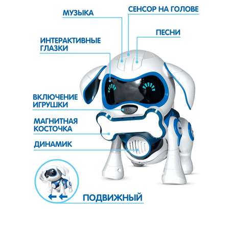 Маленьким девочкам и мальчикам этот электронный друг станет верным спутником в играх и развлечениях. Робособака многофункциональная игрушка, что делает его отличным выбором для развивающего времяпрепровождения. Он реагирует на тряску, положение в пространстве (например, если его положить на бок), и прикосновения. Пёс произносит 22 фразы на русском языке, поёт 2 песни и воспроизводит 4 мелодии. Его интерактивные led глазки отображают различные эмоции. Также он может держать косточку, которая идёт в комплекте. Двигается и воспроизводит мелодии. Реагирует на прикосновения и положение в пространстве (встроенные сенсоры) Светящиеся глазки плавно переливаются во время выполнения программ, что создает атмосферу настоящего домашнего питомца, который всегда будет готов к активным играм и беготне по всему дому. Эта живая игрушка хорошо подойдет в качестве подарка ко дню рождения или любому другому празднику, принося радость вашему ребенку. Робопес заинтересует детей разных возрастов: от самых маленьких до подростков благодаря своим уникальным возможностям. Этот щенок-робот станет любимчиком вашего сына или дочки. Почувствуйте радость общения с настоящим другом на четырех лапках - пригласите этого щенка к себе домой!