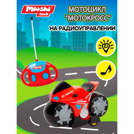 Игрушечная модель спортбайка работает от батареек, что обеспечивает автономность во время игр вне дома или на улице.