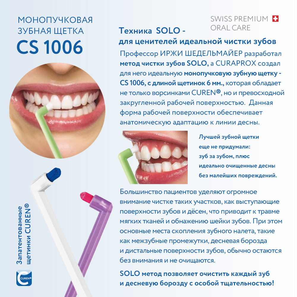 Монопучковая щетка CURAPROX CS Single для очистки труднодоступных поверхностей зубов и зубодесневой борозды. Длина пучка 6 мм. Подходит для очистки отдельно стоящих зубов, ретромолярной зоны. Благодаря закругленной щетине, щетка легко адаптируется к анатомии десневого края, не оказывает давления. Цвет щетины щетки может отличаться от указанной на фотоЦены в интернет-магазине могут отличаться от розничных магазинов.