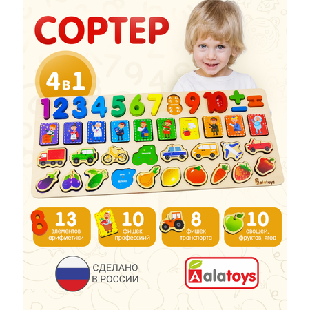 Характеристики развивающей игрушки: изготовлена из экологически чистых и высококачественных материалов. Игрушка сортер деревянный не пахнет краской, клеем. Краска, которая используется на производстве детских игрушек Алатойс на водной основе, гипоаллергенная и не может причинить вреда и вызвать аллергию. Срок службы (годности) не ограничен!