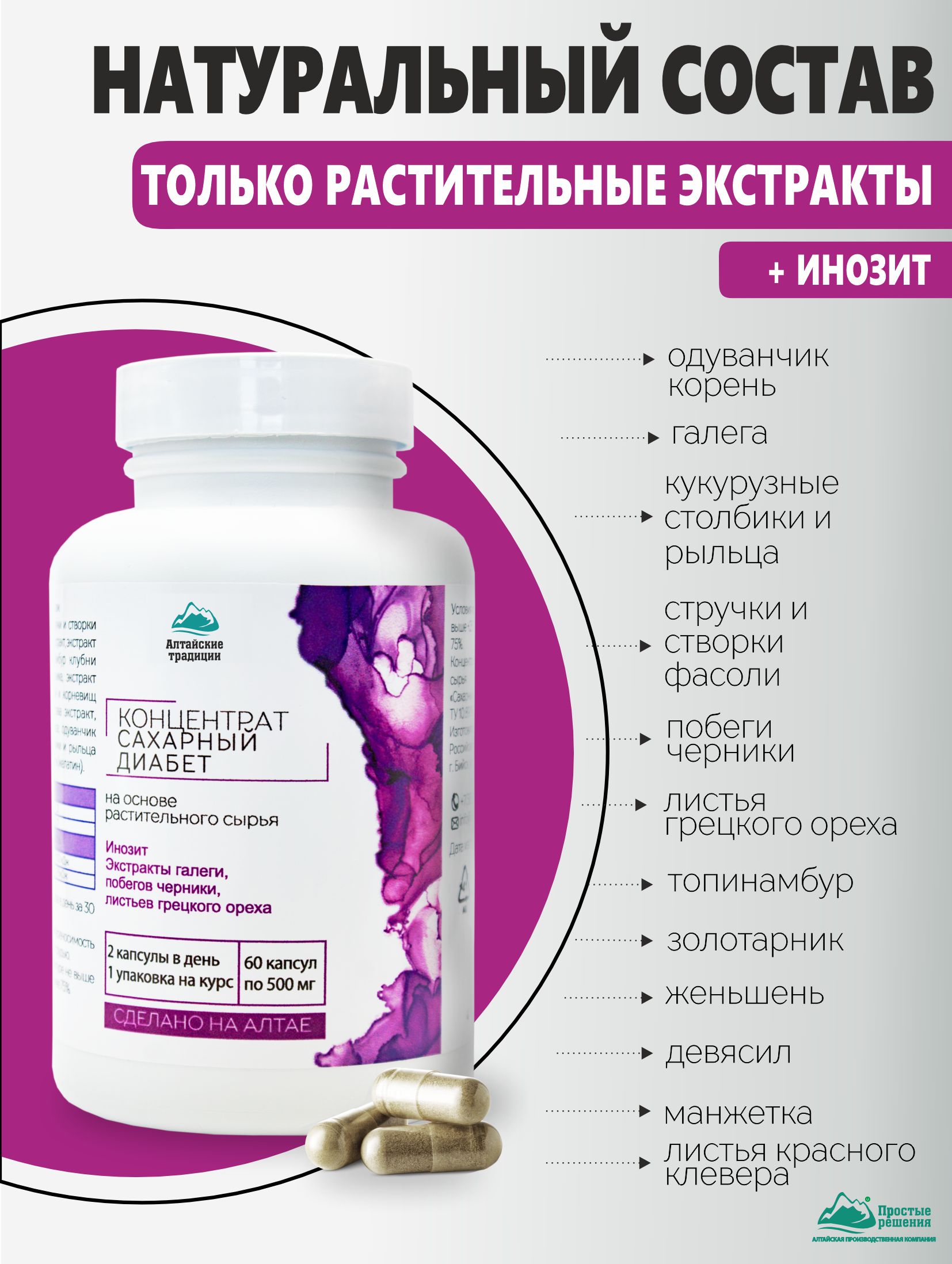 Обеспечьте своему организму природную поддержку! «Концентрат «Сахарный диабет» — это не просто капсулы, а ваш спутник на пути к внутреннему равновесию и здоровью. Натуральный комплекс из алтайских растений — галеги, фасоли, топинамбура, одуванчика и инозита — создан, чтобы поддерживать вас каждый день. Встречайте жизнь с легкостью и уверенностью!
