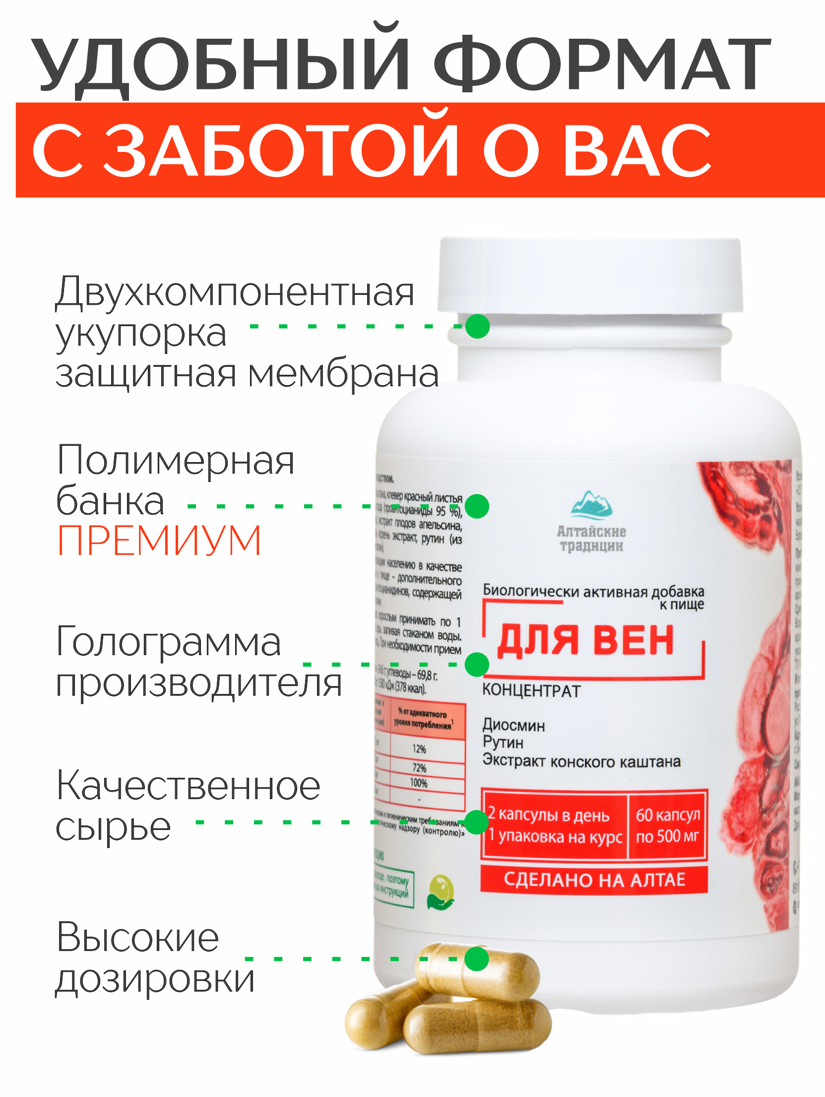 Здравствуйте Юлия! Благодарим Вас за покупку и высокую оценку. Мы обращаем Ваше внимание, что наша цена оправдывает качество. Вы ведь понимаете, что качественный товар требует дополнительных исследований, проверок, тестов, вовлечения в работу лучших специалистов. При этом цены на сырьё повышаются, да Вы и сами видите, что всё дорожает. На данный момент мы не готовы предлагать что-то дешёвое, потому что знаем - Вы достойны лучшего. Мы заботимся о Вашем здоровье и знаем, что на нём экономить нельзя. Попытка экономии всегда оборачивается необходимостью больших затрат на восстановление физического состояния. Добавьте нас в Ваши любимые бренды, отслеживайте любимые продукты и закупайтесь по скидке в прок. Но помните, что здоровье - оно одно у нас. Не откладывайте жизнь, ожидая только распродажи. Пожалуйста, позаботьтесь о себе уже сегодня. Начало венозной системы в печени, поэтому если печень в дисфункции, то страдает венозная система. Поэтому рекомендуем в дополнение пропить ещё и Концентрат пищевой Алтайские традиции Для печени - детокс витамины расторопша холин очищение печени 60 капсул по 1 капсуле 2 раза в день. Растительные экстракты комплекса способствуют мягкому очищению печени, снижению воспалительных процессов и нормализации её функций, стимулируют восстановление клеток печени, улучшают её функциональное состояние. Здоровья Вам!