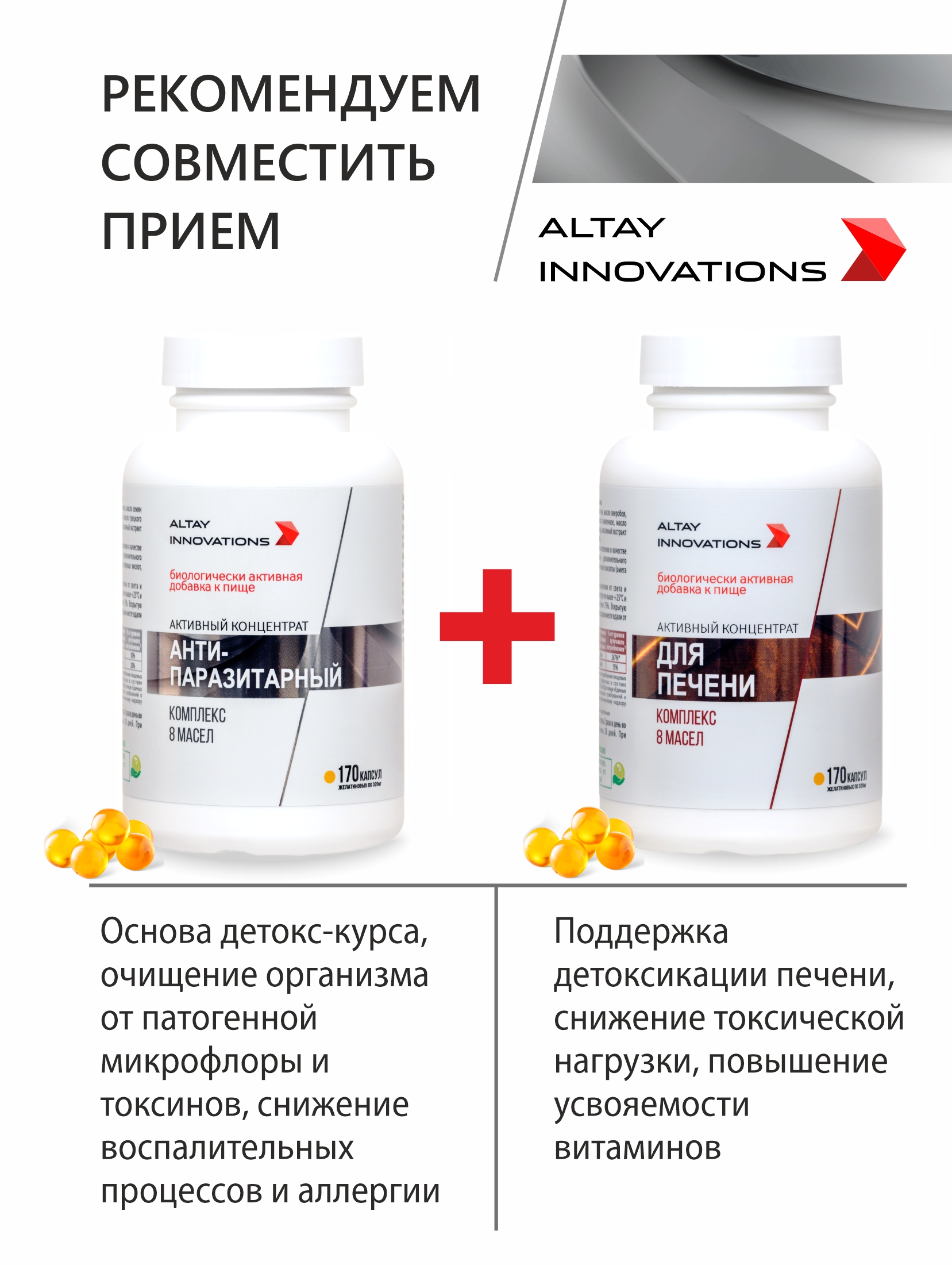 Биологически активная добавка к пище «Активный концентрат Антипаразитарный» - натуральный комплекс из 8 концентрированных масел для защиты от паразитов и очищения организма взрослых мужчин и женщин. Входящие в состав масла обладают высокой биодоступностью и усвояемостью благодаря желатиновым капсулам сферической формы. Этот витаминный комплекс содержит полиненасыщенные жирные кислоты Омега 3, 6, 9, жирорастворимые витамины и антиоксиданты, прошел государственную регистрацию, что подтверждает его качество и эффективность.
