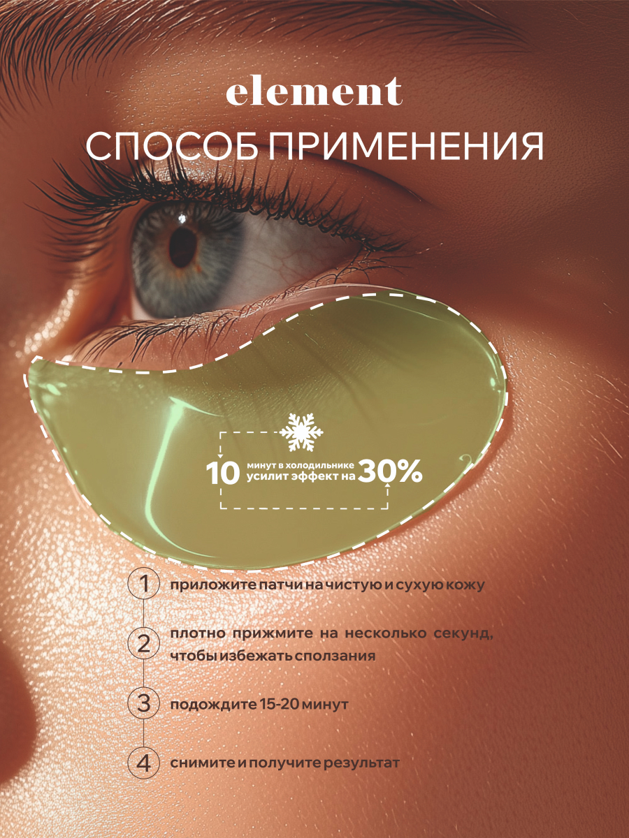 Патчи для глаз ELEMENT гидрогелевые с морскими микроэлементами от темных кругов 60 шт Корея
