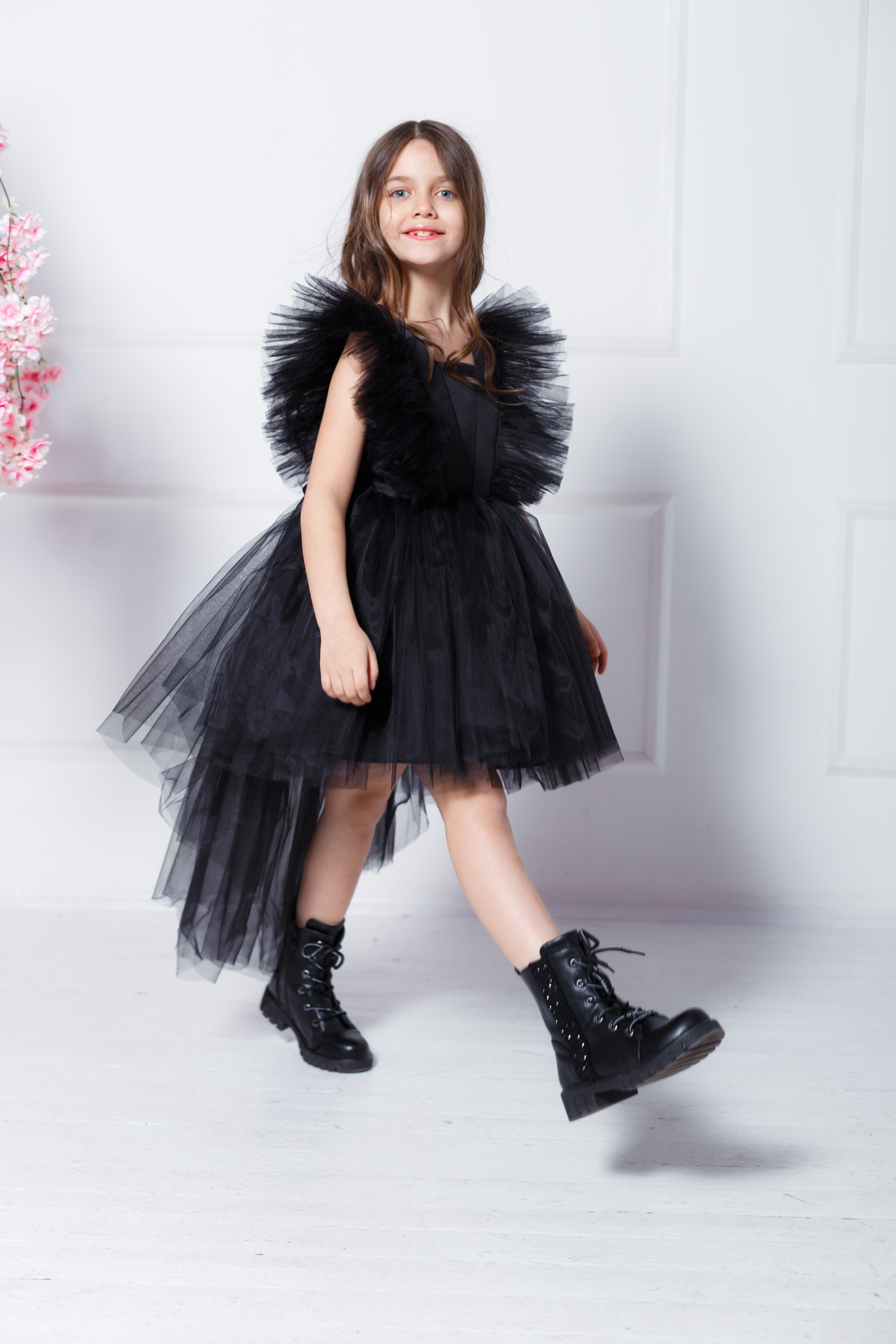 Шлейф и пышная юбка платья создают великолепный образ, который подчеркнет красоту и изящество маленькой девочки. Но не только это делает платье особенным. Атласный топ, украшенный рукавами-крылышками, придаст образу легкость и воздушность, а подкладка из хлопка обеспечит комфорт и уют при носке.
