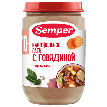 Цена на Пюре Semper Рагу картофель-говядина с 10 мес 190 г - 269 ₽.