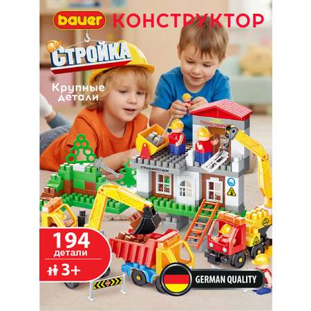 Конструкторы Bauer «Стройка» помогут маленькому строителю воплотить в жизнь любую свою фантазию. Собирая из кубиков свои будущие конструкторские шедевры, ребенок развивает логическое мышление и моторные навыки. С наборами "Стройка" так просто создать самую настоящую строительную площадку у себя дома! Тематический блочный конструктор, дополненный разнообразной сборной строительной техникой. Развивает мелкую моторику, аналитические способности, стимулирует творческую активность ребенка. Предназначен для малышей от 3х лет. Детали конструктора изготовлены из безопасного пластика и пищевого красителя, подходят к другим наборам от Bauer. В комплект входят: кубики различных цветов и размеров, сборная строительная техника, сборные машинки, фигурки человечков и набор инструментов для них, элементы дорожного полотна, набор наклеек "Дорожные знаки", элементы декора (дорожные знаки, деревья, светофоры, забор, окна, двери, крыши), и Блокмен регулировщик.