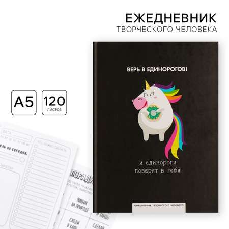 Ежедневник ArtFox творческого человека А5 120 листов «Верь в единорогов»