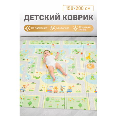 Детский коврик MIKMEL складной игровой развивающий двусторонний для ползания 150х200 см Дороги Холмы
