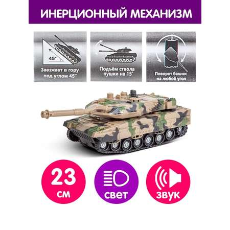 Этот детский игрушечный военный танк - идеальный подарок для мальчиков и девочек всех возрастов. С помощью военной инерционной игрушки ребенок сможет развивать координацию движений, улучшать мышление, воображение и наслаждаться игрой на длительное время. Танк оснащен световыми и звуковыми эффектами, что позволяет ребенку окунуться в военный мир и сделать игру более реалистичной. Размер танка 23 см. Так же у военной машины вращается башня на 360 градусов, а гусеницы прорезинены. Благодаря прочной конструкции, эта военная машинка способна преодолевать различные преграды. Игрушка инерционная танк абсолютно безопасен, так как изготовлен из качественного, ABS пластика. Танк ездит на колесиках по инерции вперед и назад, достаточно просто толкнуть его рукой. Данная игрушечная модель танка подходит как для самостоятельной игры ребенку, так и для совместных сражений с друзьями и подарит вашему ребенку много часов интересной захватывающей игры, а также не забываемые ощущения и море положительных эмоций.