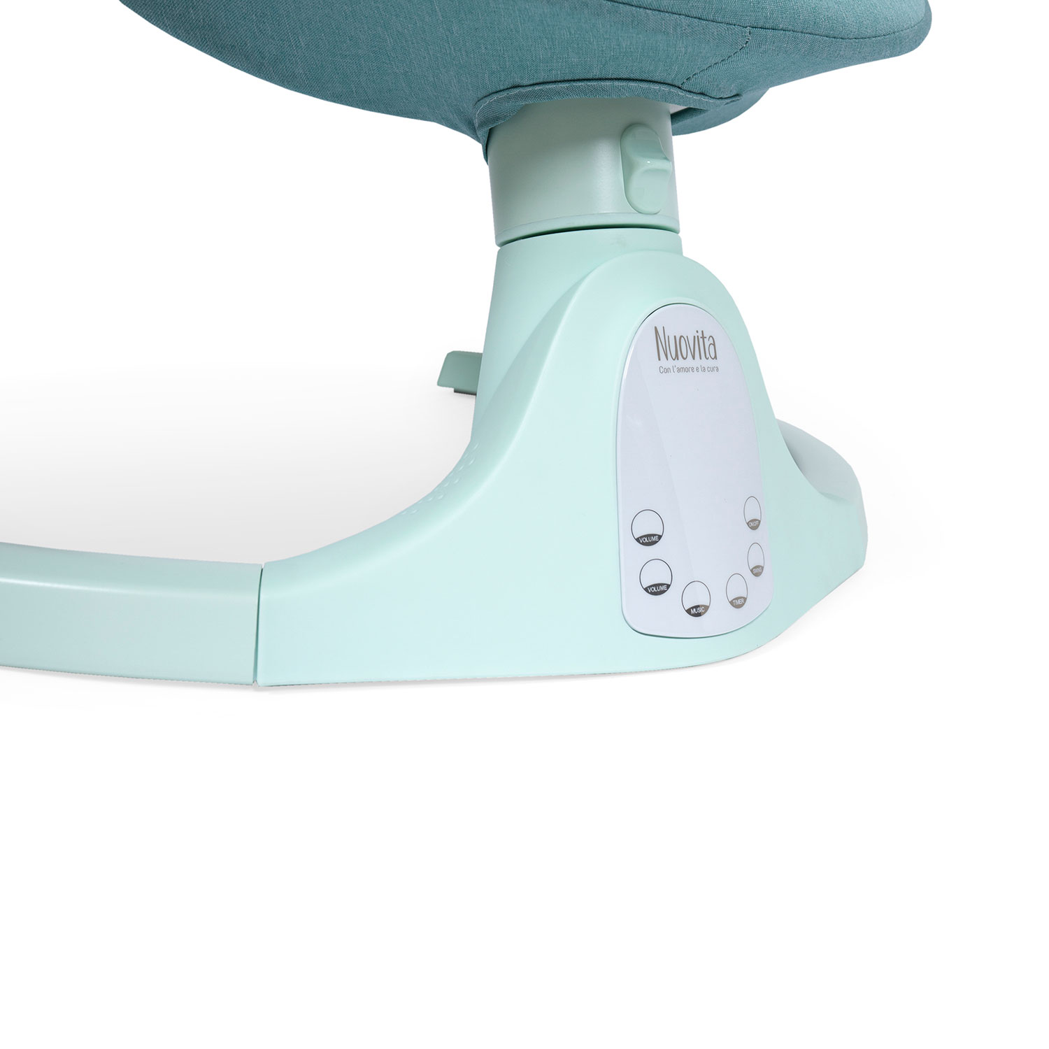 Электрокачели-шезлонг Nuovita Mistero MS2 Уютная люлька, практичный шезлонг, центр развлечений, электрические качели — все эти функции объединяет модель Nuovita Mistero MS2. Благодаря регулируемому углу наклона его эргономичного сидения можно буквально одним движением изменить положение «лёжа» на положение «полулежа», превратив гнёздышко для сна в креслице, удобное для знакомства с окружающим миром. В минуты бодрствования малыш сможет наслаждаться в нём разглядыванием прикрепленных к дуге игрушек, разнообразными мелодиями и звуками природы и, разумеется, плавным покачиванием, которое так похоже на покачивание заботливых и нежных маминых рук! В устройстве немало плюсов и для родителей: они по достоинству оценят не только его многофункциональность, но и простую в уходе ткань сидения, многообразие способов управления (при помощи сенсорной панели, дистанционного пульта, родительского смартфона), а также надёжную, но при этом лёгкую конструкцию из авиационного алюминия.