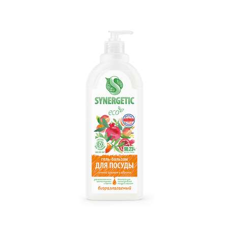 Биоразлагаемый гель-бальзам для мытья посуды и детских игрушек SYNERGETIC "Сочный гранат и абрикос" — это экологичное, безопасное и эффективное средство для мытья всех видов посуды, в том числе детской, кухонного инвентаря и детских игрушек от любых видов загрязнений. Легко смывается водой и не оставляет следов на посуде.
