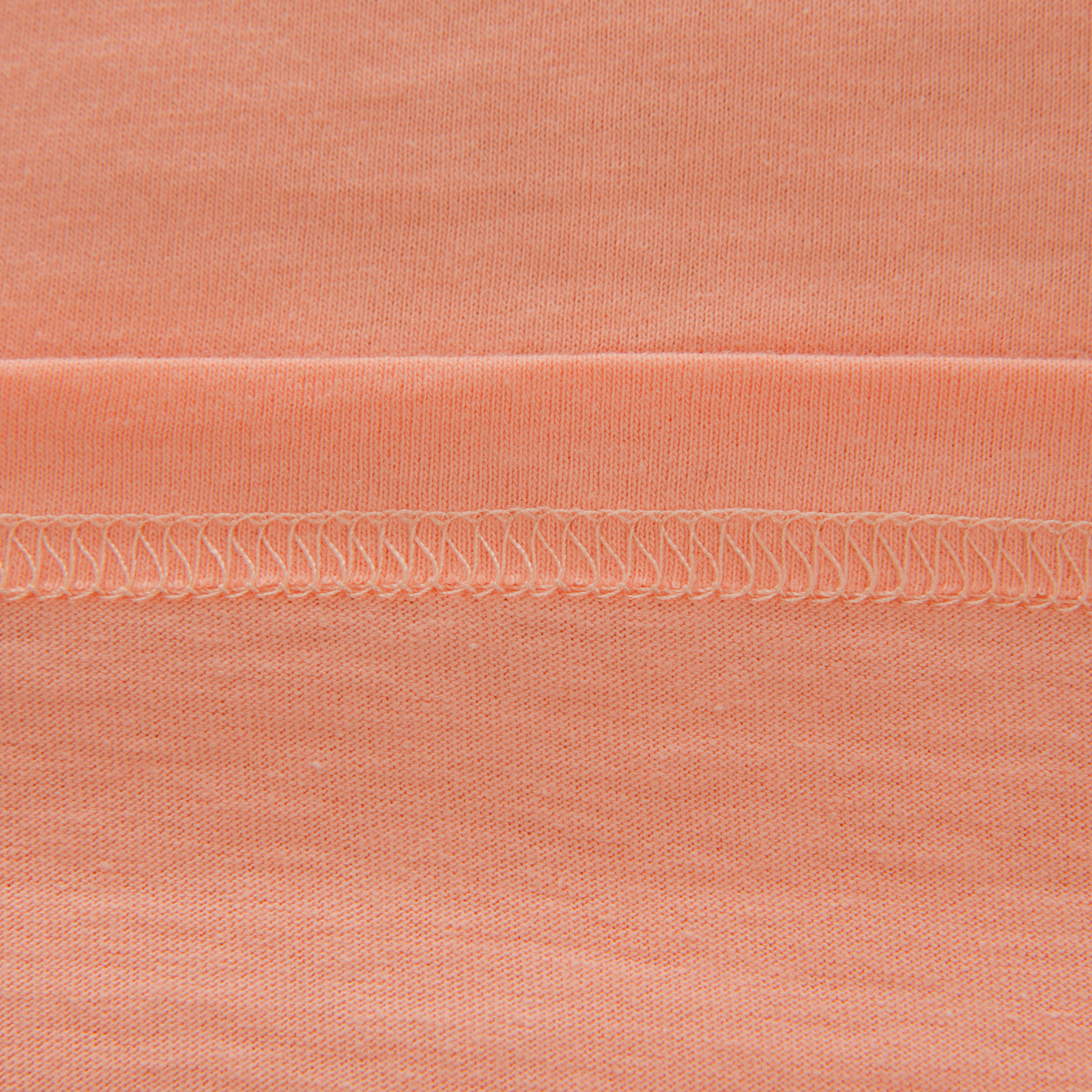 Плоскошовная обработка: низ футболки и рукавов изделия аккуратно подогнуты.