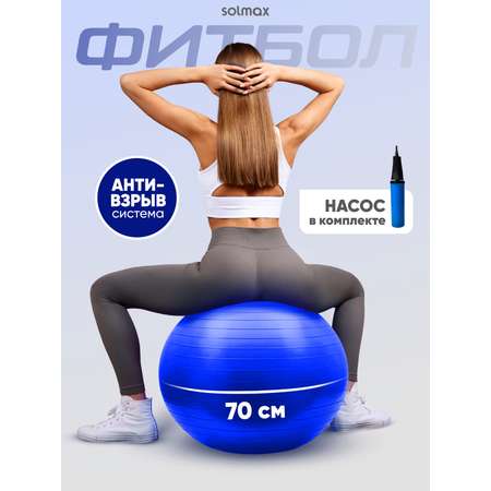 Гимнастический мяч для фитнеса Solmax Фитбол для тренировок синий 75 см FI54760