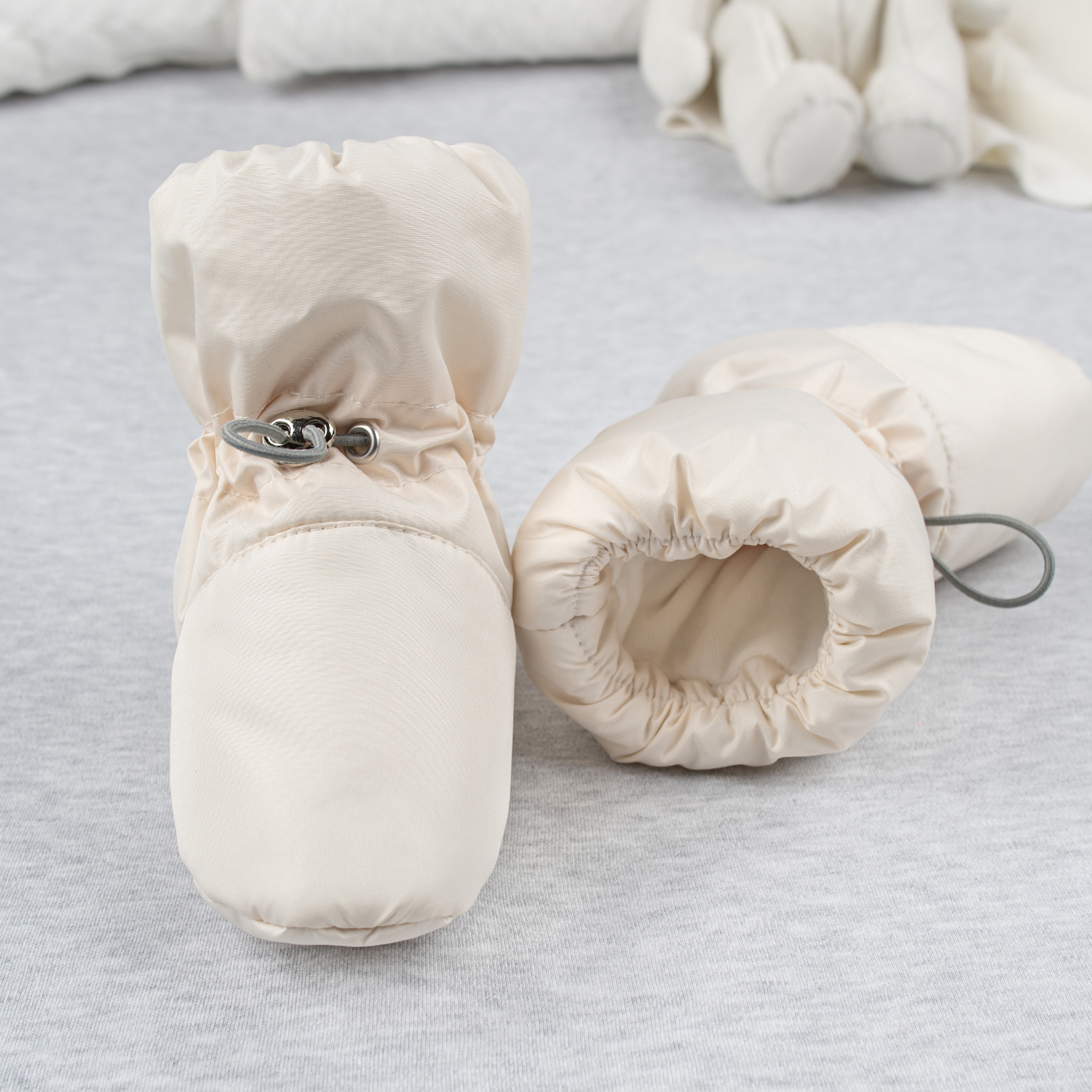 Утепленные пинетки для малышей - незаменимый аксессуар для каждого ребенка в прохладное врем года. Верхняя часть пинеток выполнена из непромокаемой плащевой ткани, подклад из велюра, в качестве утеплителя используется холлофайбер - 200гр/кв.м. Пинетки скроены согласно особенностям детских ножек, по верхней части идет утяжка, позволяющая надежно зафиксировать обувь на ножке малыша. Пинетки легко надеваются и снимаются. Светоотражающий флажок по заднему шву изделий. Многообразие расцветок подойдет как мальчикам, так и девочкам. Вы с легкостью подберете пинетки под комбинезон малыша. Пинетки идут в двух размерах р.17-18, что соответствует длине стопы 10 -11см, и р.19-20, что соответствует длине стопы 11-12,5см. Утепленная модель пинеток отлично подойдет на демисезонный период до 0 С. Гуляйте и наслаждайтесть прогулками с новой коллекцией детской одежды от LEO! Детская одежда может быть красивой и удобной! Детская одежда LEO-лучше только мама!