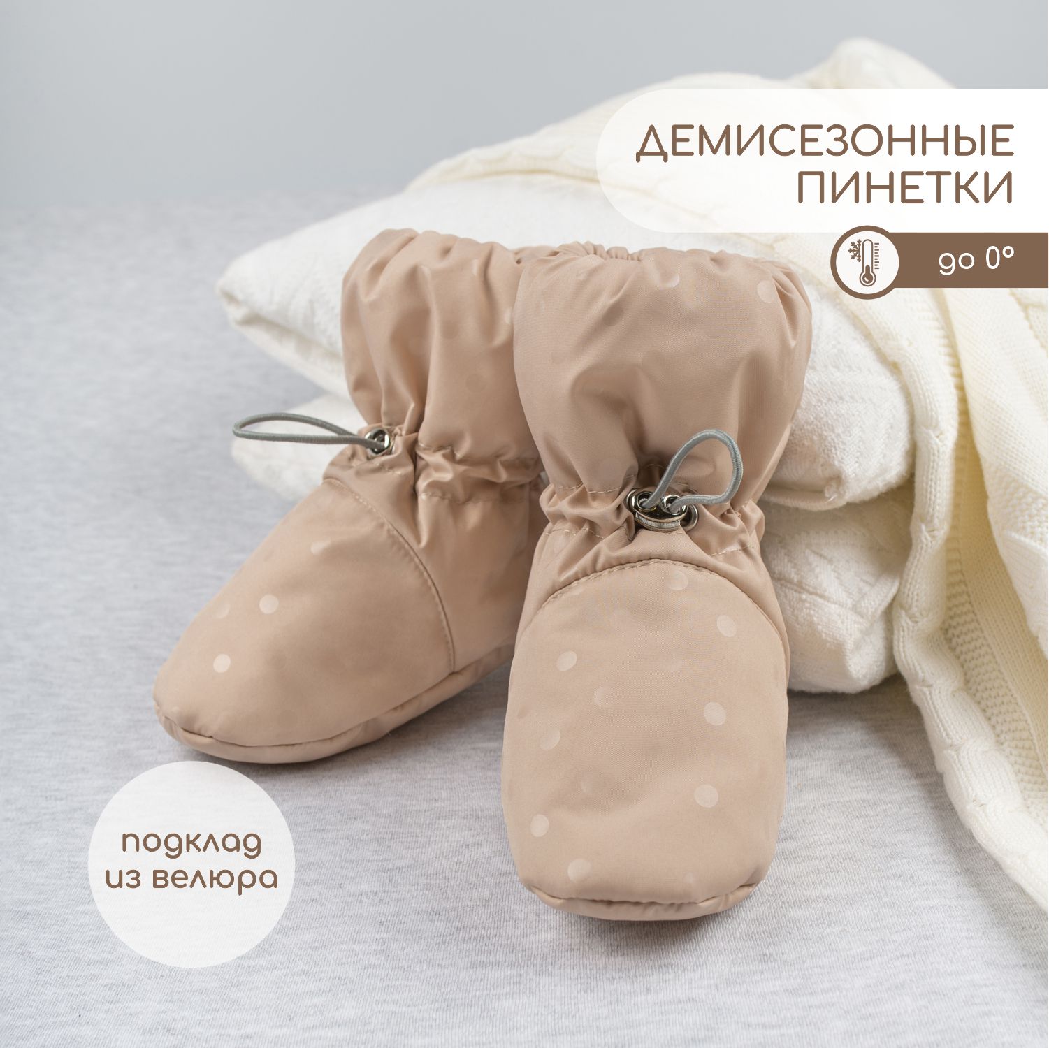 Утепленные пинетки для малышей - незаменимый аксессуар для каждого ребенка в прохладное врем года. Верхняя часть пинеток выполнена из непромокаемой плащевой ткани, подклад из велюра, в качестве утеплителя используется холлофайбер - 200гр/кв.м. Пинетки скроены согласно особенностям детских ножек, по верхней части идет утяжка, позволяющая надежно зафиксировать обувь на ножке малыша. Пинетки легко надеваются и снимаются. Светоотражающий флажок по заднему шву изделий. Многообразие расцветок подойдет как мальчикам, так и девочкам. Вы с легкостью подберете пинетки под комбинезон малыша. Пинетки идут в двух размерах р.17-18, что соответствует длине стопы 10 -11см, и р.19-20, что соответствует длине стопы 11-12,5см. Утепленная модель пинеток отлично подойдет на демисезонный период до 0 С. Гуляйте и наслаждайтесть прогулками с новой коллекцией детской одежды от LEO! Детская одежда может быть красивой и удобной! Детская одежда LEO-лучше только мама!