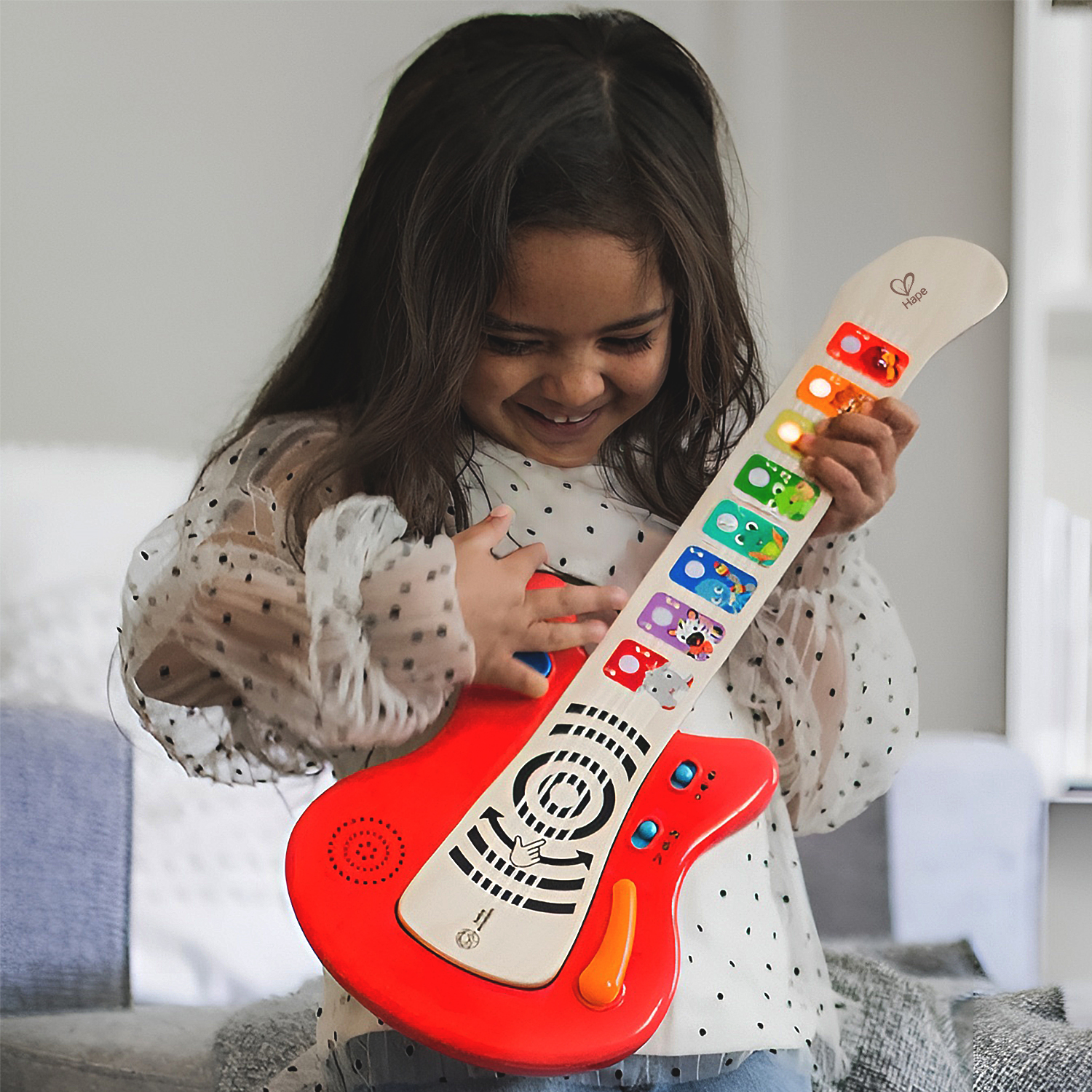 Добрый день! Огромное спасибо за столь развёрнутый отзыв и за высокую оценку! Рады видеть, что качество гитары Вас порадовало. Рекомендуем также обратить внимание на развивающие игрушки бренда, например, игрушка "Ракета": код товара 1000562405. Приятных игр!