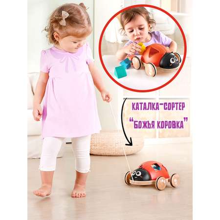 Игрушка для малышей каталка HAPE сортер Божья коровка 5 предметов в наборе E0364_HP