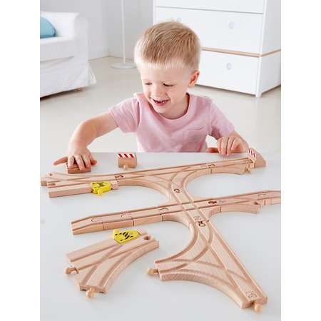 Используйте рельсы, чтобы увеличить радиус действия существующей деревянной железной дороги. Дополнительные соединения и разветвления добавят сложности и реализма вашим схемам.