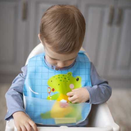 Нагрудник Uviton непромокаемый с кармашком на липучке для детей от 6 месяцев