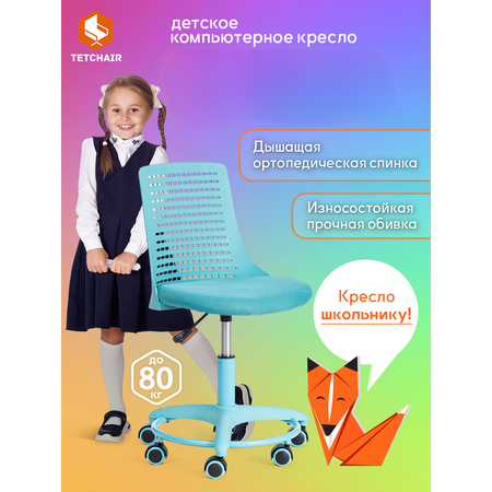 Оригинальное кресло – это незаменимый предмет мебели в комнате вашего ребенка. Привлекательная модель бирюзового цвета прекрасно дополнит любой интерьер и создаст в помещении атмосферу комфорта и уюта. Пластиковый каркас модели бирюзового цвета долговечен и надежен, не теряет своего первоначального вида продолжительное время. Сиденье бирюзового цвета выполнено из сетчатой ткани с дополнительной перфорацией для поступления воздуха. Ткань, используемая при изготовлении кресла, выдерживает до 40 000 циклов на истирание по Мартиндейлу. В седенье используется мягкий наполнитель из пенополиуретана стандартной плотности. Прочная и устойчивая полиамидная крестовина диаметром 500 мм оснащена металлической подставкой для ног, которая позволит ребенку расположиться на кресле с комфортом и удобством. Бесшумные высококачественные прорезиненные ролики не повреждают поверхность, подойдут для использования на паркете и ламинате. Ролики и крестовина в креслах бренда соответствуют стандарту . Во всех креслах бренда используются газлифты 3 класса, он способен выдерживать вес до 80 кг. Яркая расцветка, привлекательный дизайн, крепкое основание, эргономичная спинка и надежный механизм регулировки высоты будут доставлять удовольствие, восхищать вас и вашего ребенка долгие годы. Модель поставляется в разобранном виде. Необходима несложная сборка по прилагаемой инструкции. Максимальная нагрузка модели 80 кг.