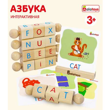 Настольная игра Английская азбука Алатойс КРУТИ-ЧИТАЙ интерактивный алфавит для малышей (15 кубиков, 40 карточек)