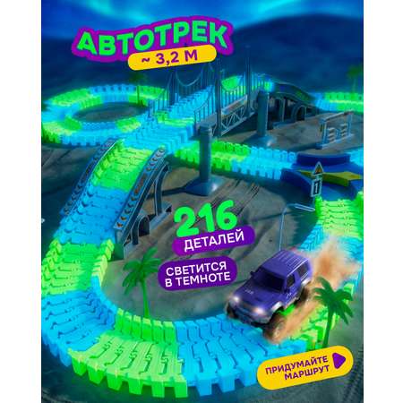 Гибкий трек светящийся с машинкой «Мегаполис» от 1TOY станет проводником в захватывающую вселенную скоростных состязаний, где гоночная машинка мчится не только вдоль ровных трасс, но и смело покоряет выпуклую или вогнутую дорогу, а если трассу «закольцевать», то мгновенно овладевает головокружительными кольцевыми маневрами. Собранная трасса для машинок может варьироваться в размерах в зависимости от конфигурации, которую вы выберете. Этот авто трек с машинкой детский содержит 216 деталей, поэтому варианты почти неограниченны. Одна из выдающихся особенностей этой игрушки для мальчиков – автотрек с машинкой можно "закольцевать", заставив машинку ехать внутри него, словно хомячка внутри специального круга. Еще одна особенность – это смена направления и 2 уровня дороги. Машинка для трека работает от 2-х батареек АА (не входят в комплект).