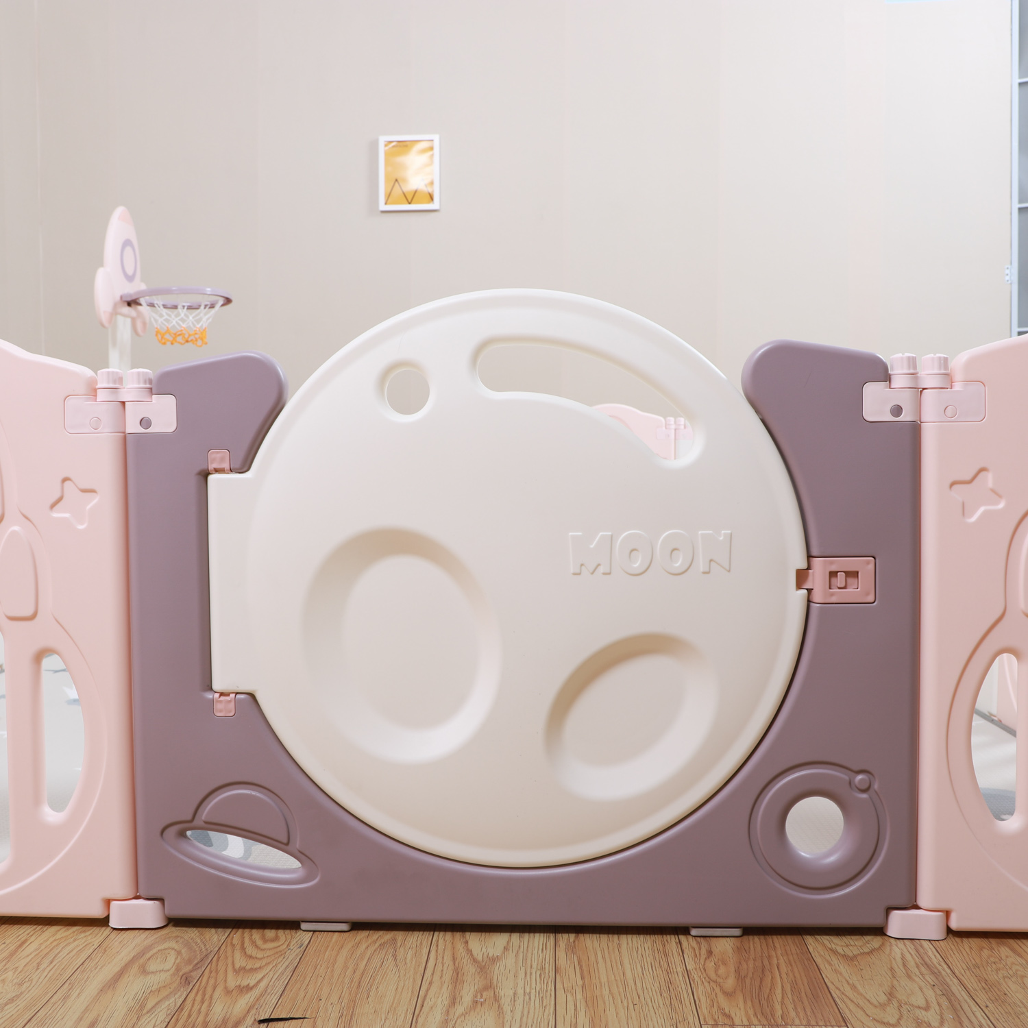 Серия Supreme Space дополнительно укомплектована яркой баскетбольной стойкой с мячиком, горкой, которую вы можете разместить как в манеже, так и отдельно. Так же в комплекте двусторонний полиуретановый коврик 200x200 см толщиной 10 мм и набор из 20 разноцветных шаров. Рифленая поверхность коврика не пропускает холод, смягчает падения при первых шагах и легка в уходе.