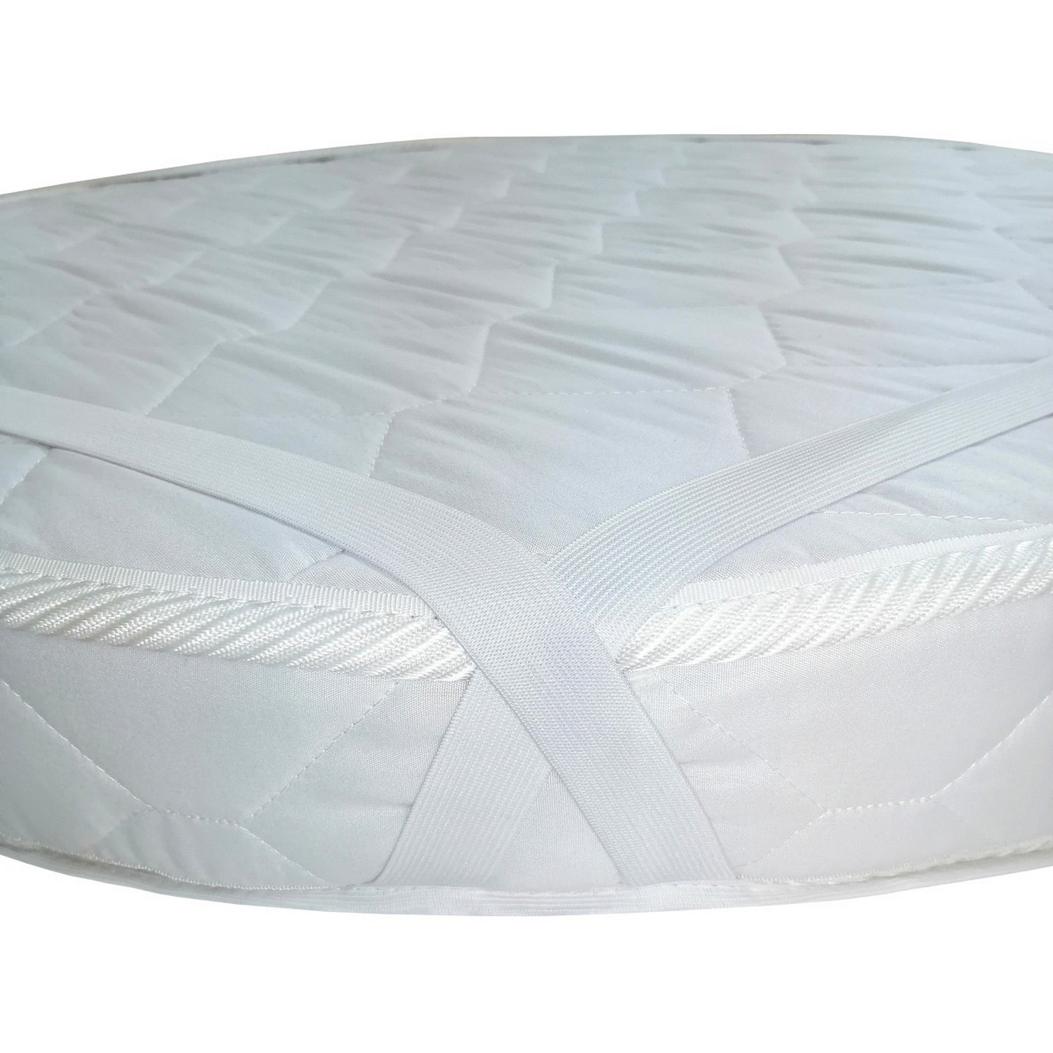 • Наматрасник надежно крепится на матрас за счет 4 резинок, расположенных с изнаночной стороны крест-накрест так, чтобы фиксация наматрасника была максимально надежной.