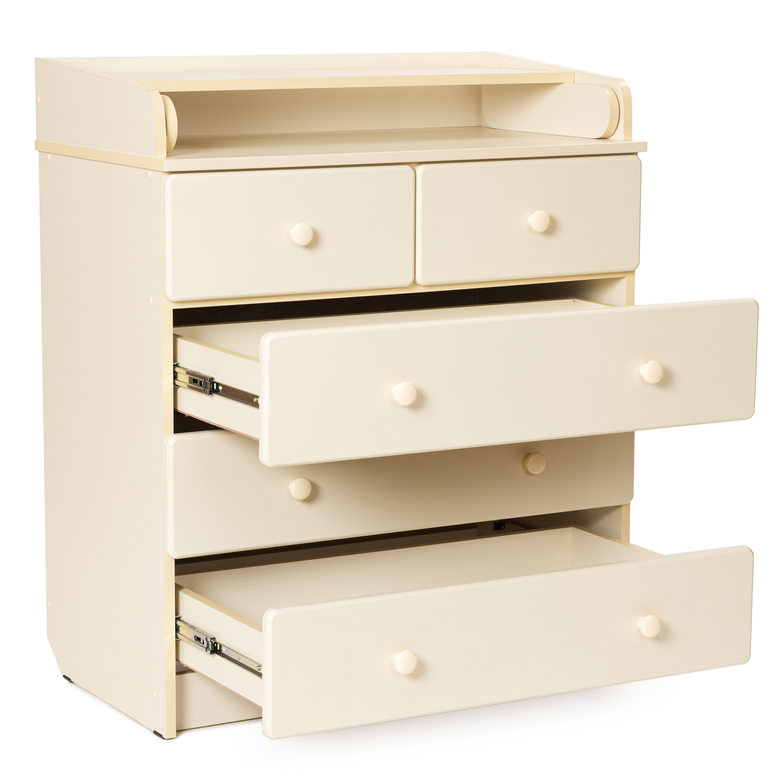 Комод оборудован пеленальным столиком с простым и надежным механизмом раскладывания, 5- вместительных ящика.