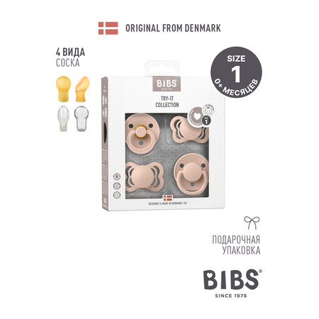 Набор 4 шт.Соска-пустышка BIBS Try-it Blush 0+ месяцев