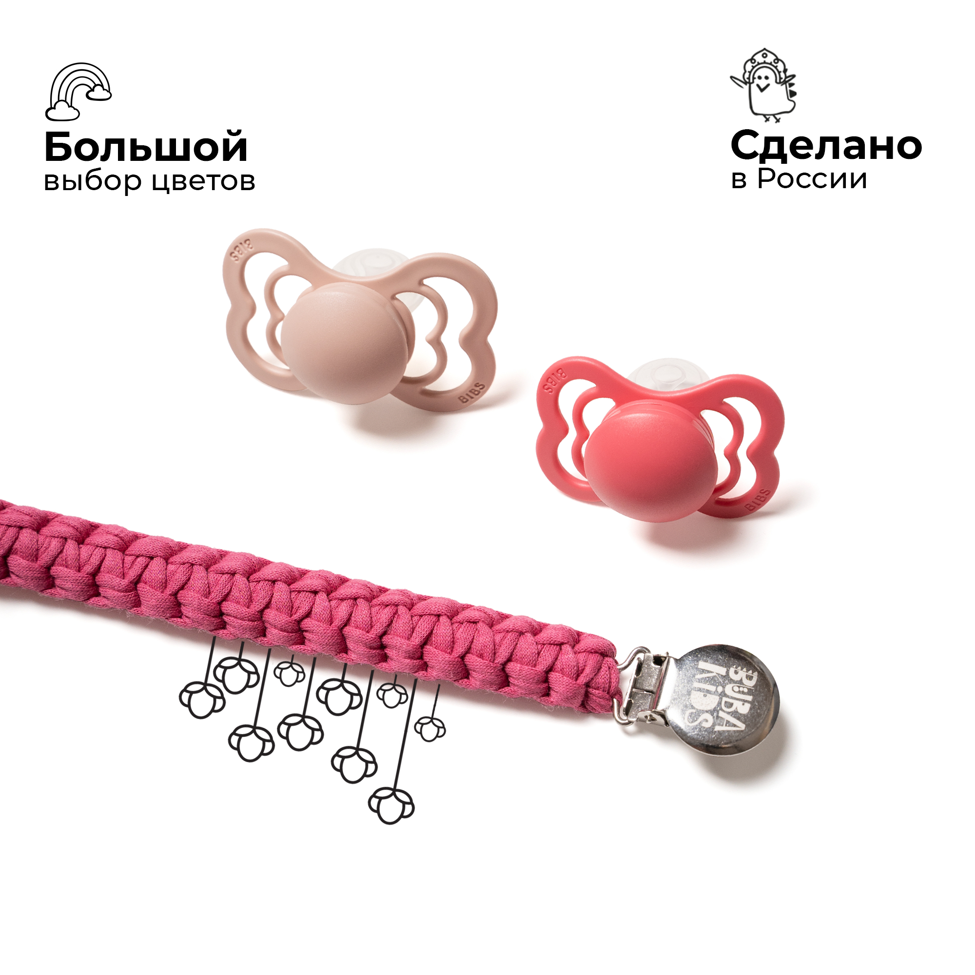 Держатель для пустышки BUBA KIDS плетеный Малина