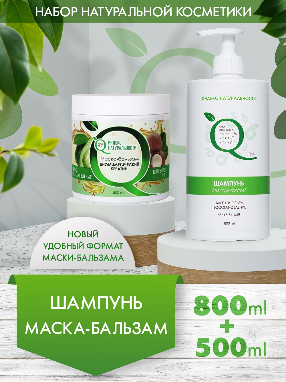 Набор для ухода за волосами Индекс Натуральности шампунь 800 ml маска бальзам 500 ml