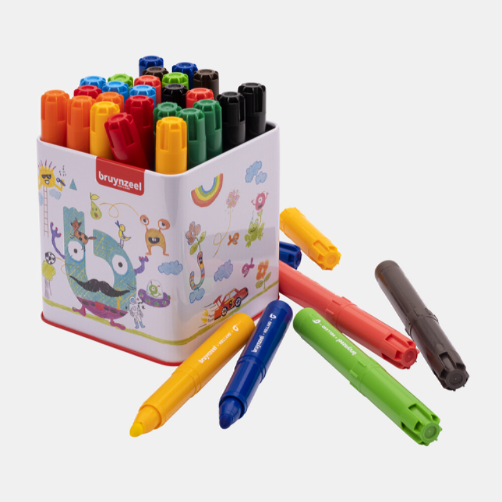 Серия фломастеров Bruynzeel Kids - создана для тех, кто хочет исследовать мир во всем его бесконечном цветовом разнообразии. Преимуществом фломастеров этой серии являются высококачественные фетровые наконечники, позволяющие создавать яркие рисунки или подолгу и с увлечением раскрашивать картинки. Качественные чернила на водной основе легко стираются почти с любой поверхности - будь то одежда, руки или столешница.