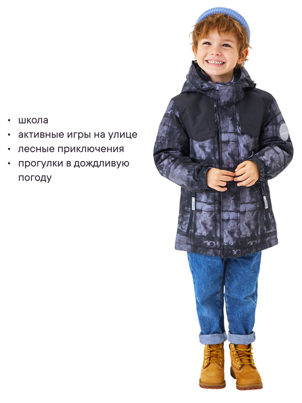 Детская теплая куртка отлично подойдет для прохладной весенней и осенней погоды, а также прохладного лета. Мембранная ткань защитит от дождя и ветра, стильный дизайн поможет выделиться в толпе, как юному школьнику, так и мальчику подростку.
