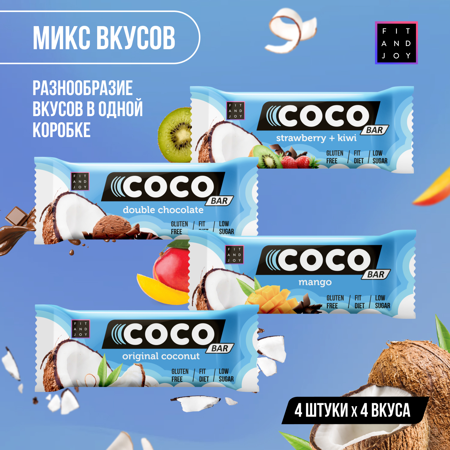 Кокосовый батончик FIT AND JOY микс из 4-х вкусов набор 16 шт