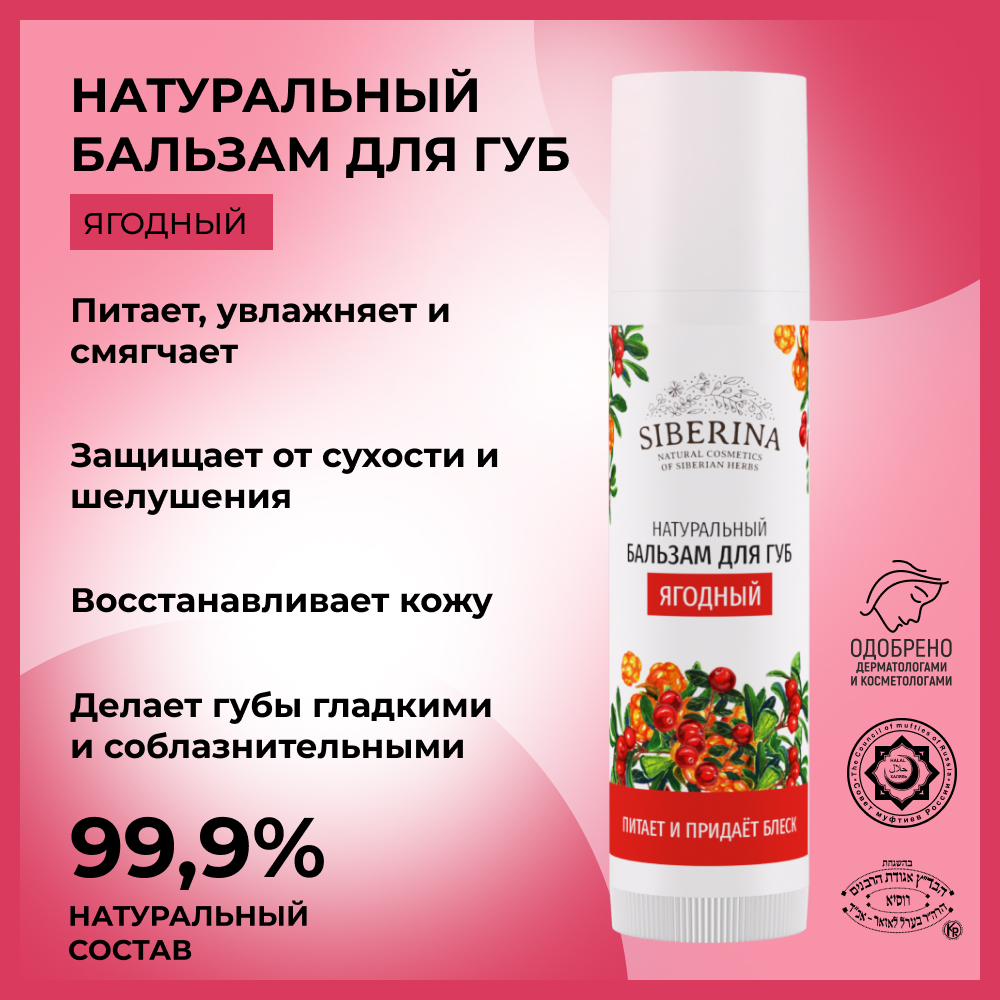 Бальзам для губ Siberina натуральный «Ягодный» увлажнение и питание 6 мл