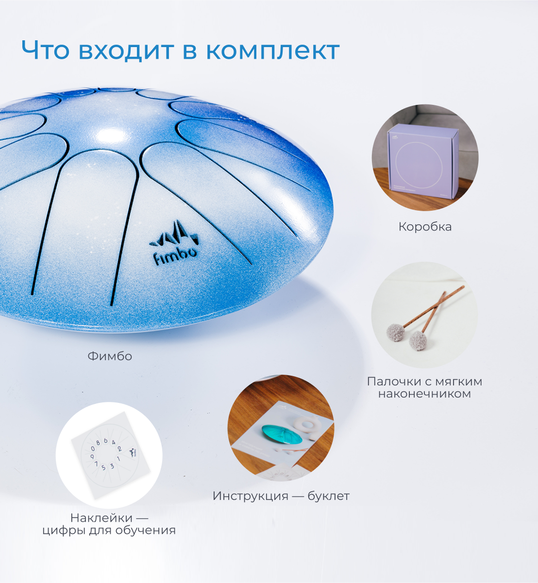 РАССЛАБЛЯЕТ И УСПОКАИВАЕТ ЗВУЧАНИЕМ. Перкуссии используются для медитации. Такой эффект имеют язычковые барабаны, глюкофоны, ханг, поющие чаши и калимба. Игра на Фимбо успокоит, как после йоги. РАЗВИВАЕТ МУЗЫКАЛЬНЫЕ СПОСОБНОСТИ РЕБЕНКА. Развитие слуха, чувство ритма, музыкальные способности, координацию рук и глаз. Музыкальная игрушка помогает тренировать память, концентрировать внимание, развитие мелкой моторики. Игрушка воспитывает чувство музыки, как детская гитара, укулеле, дудочка, интерактивное пианино, синтезатор. Не погремушка, а интерактивная игра. РАЗВИВАЕТ ТВОРЧЕСТВО И ВООБРАЖЕНИЕ. Игре на муз. инструментах - один из способов переформатирования работы мозга. Научит слышать ритмы, музыку везде. Через 20-30 дней у вас появится заметный прогресс.