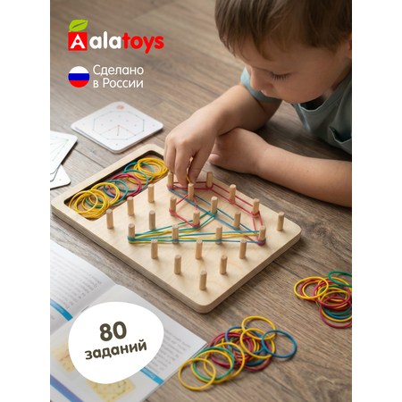 Геоборд деревянный детский (80 заданий, 50 резинок) Алатойс Развивающий набор для малышей Нейротренажер