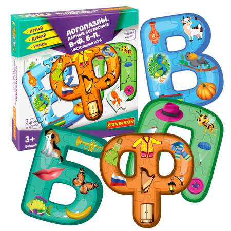 Цена на Настольная развивающая игра BONDIBON Логопазлы Парные согласные В и Ф Б и П 2 в 1 серия Играй Думай Учись - 981 ₽.