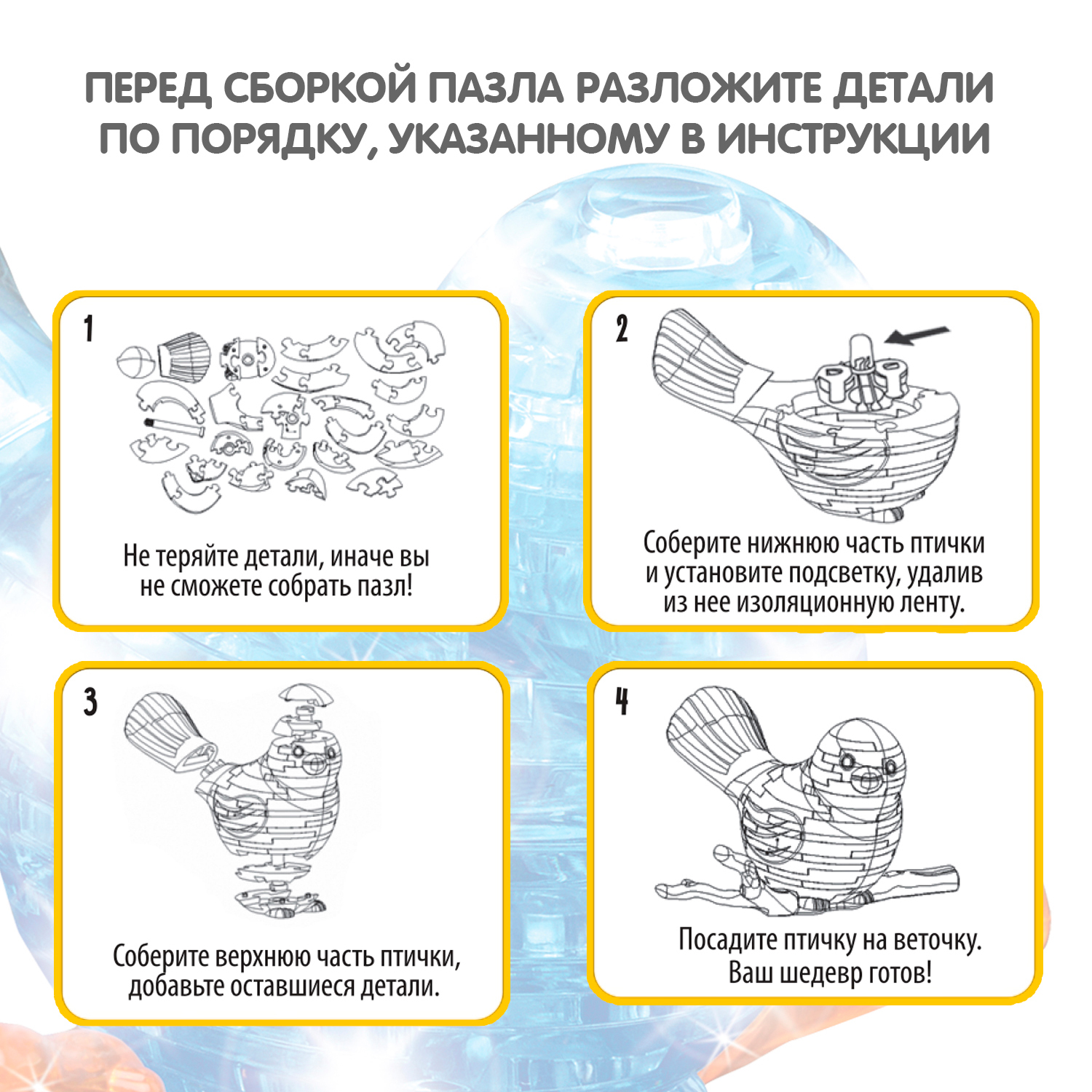 Пазл 3D Птичка с подсветкой из серии Магия кристаллов от Bondibon — это уникальный объемный конструктор, который будет интересен детям, подросткам и даже взрослым. Эта отличная развивающая игрушка объединяет в себе обучающий и игровой процесс.