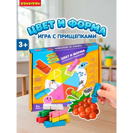Настольная игра Цвет и формы серии Играй думай твори от Bondibon — это игровой набор, созданный для обучения детей в игровой форме через объемное восприятие: на слух, визуально, тактильно, с помощью логических выводов. В процессе игры дети познакомятся с геометрическими фигурами, выучат и закрепят основные цвета, разовьют мелкую моторику, память, логику, познавательные способности, внимание, фантазию. Развивающая игра с прищепками подходит как для малышей, так и для дошкольников. Это настоящий нейротренажер для развития и веселого времяпрепровождения. Идеальный подарок мальчику и девочке на день рождения или новый год. А также оригинальный и полезный сюрприз в детский сад на праздник. Выберите задание и прикрепите к основе прищепкой фигуры согласно ему: по цвету, форме, очертанию или парные. Пройдите лабиринт, прикрепив фигуры из задания. Такие обучающие игры развивают мелкую моторику, мышление и интеллект, что особенно полезно дошкольникам. В комплекте: 3 двусторонние игровые основы из картона, 12 прищепок, 18 фигурных деталей, буклет с заданиями. Предназначено детям от 3 лет. Эта умная и дидактическая настолка - монтессори подходит как для развивающего досуга детей дома, занятий на каникулах, так и для обучающих занятий с логопедом, педагогом или воспитателем в детском саду. Тактильные игры - сортеры полезны для малышей, как наглядное пособие и познавательный методический материал изучения основных цветов, оттенков и геометрических форм.. Логические нейроигры — это интересные и прикольные развивалки, которые отвлекут от гаджетов, помогут ребенку провести время с пользой. Компактный формат позволяет брать игру в дорогу, что делает ее удобным спутником в машине, самолете или поезде. Коробка с ярким дизайном - это оригинальный подарочный вариант новогоднего сюрприза. В коллекции товаров от Бондибон представлены детские обучающие и познавательные игрушки для девочек и мальчиков, крутые необычные развивашки для подростков, популярные настолки для всей семьи!