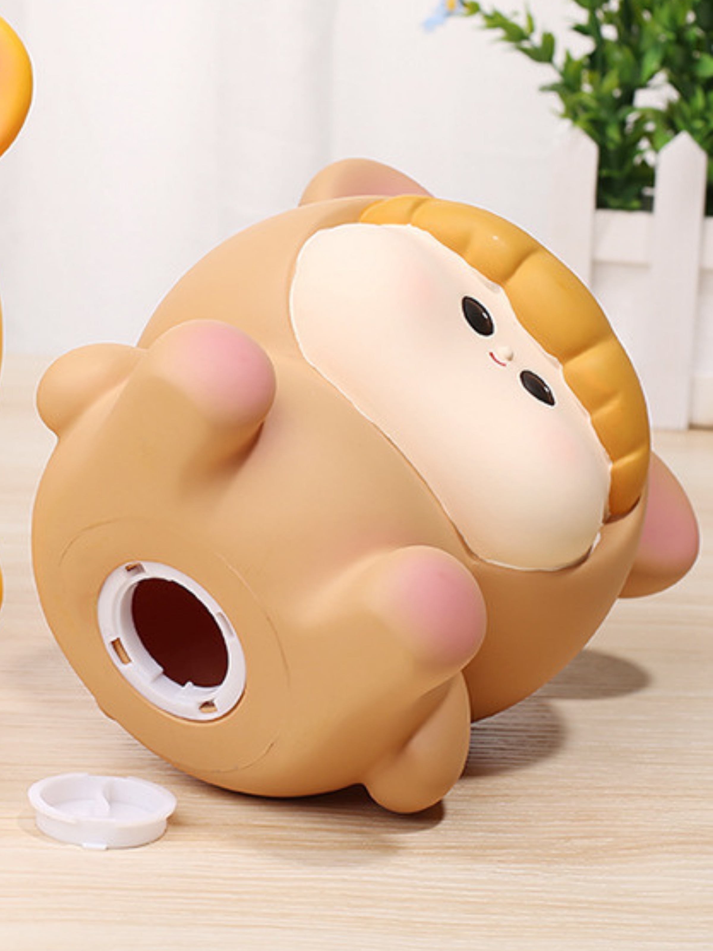 Корпус выполнен из прочного, безопасного пластика: лёгкий, без острых кромок и приятный на ощупь. Материал устойчив к случайным падениям и перестановкам — не разбивается, как керамика, поэтому копилку удобно доверить ребёнку. Матовый мёдовый оттенок легко сочетается с мебелью и текстилём, а мягкие округлые формы добавляют уюта.