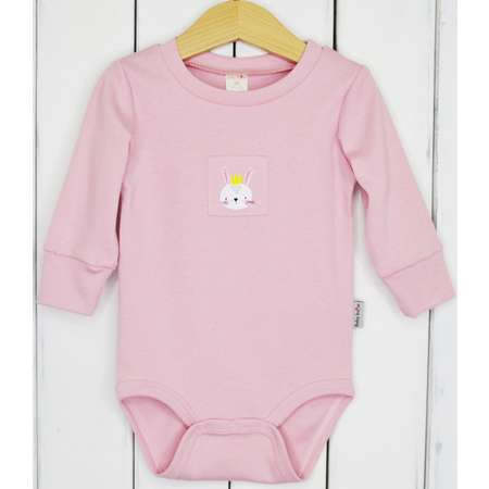 Детское боди BABY-BOOM для девочки нежного розового цвета, декорированный принтом с зайкой. Выполнено из нежнейшей рибаны (100% хлопок), которая имеет хорошую эластичность, не пилингуется и не деформируется после частых стирок. Полукомбинезон с длинными рукавами с эластичными манжетами. Застежка - кнопки - по низу изделия.